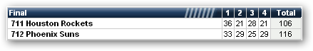 predict the 3rd Q box score (including which team is leading) & receive 50 points. 27-33 Suns