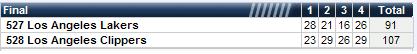 predict the 2nd Q box score (including which team is leading) & receive 50 points. 27-21 Lakers