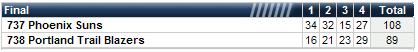 predict the full game (including OT) box score (including which team is leading) & receive 100 points. 27-21 Suns 4th/ 102-105 Portland