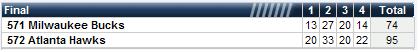 predict the full game (including OT) box score (including which team is leading) & receive 100 points. 27-20 Bucks 4th/ 93-98 Hawks Fg
