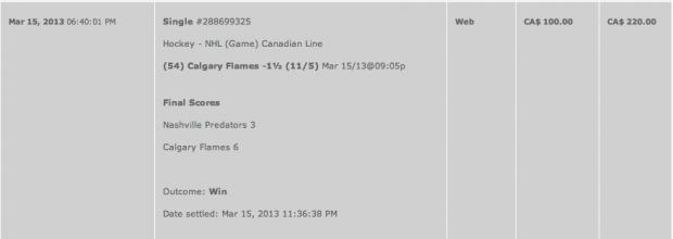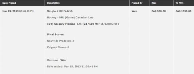 #12Thank you Max!! I was thinking to play the Calgary in Regulation, but I had a feeling Nashville was going to be tired.