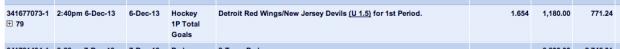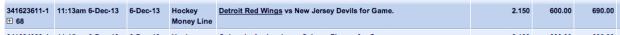 These two bets (Devils vs Red Wings 1Period - Under1.5 & Red Wings ML) was made from my phone in a sports bar - So I didn't have time to post it here. Anyway this just made a losing day a little smaller.