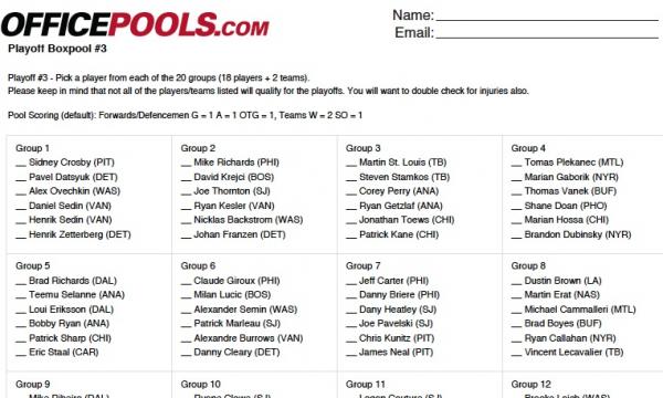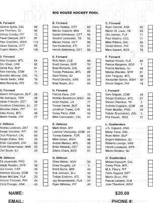 #7888Are you big into the Hockey Pools Rocket,pick one player each from a number of groups,and then you collect points over the year.Comment -