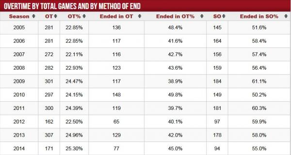 http://www.sportingcharts.com/articles/nhl/how-often-is-overtime-needed-in-the-nhl.aspx