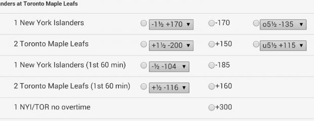 Islanders no overtime +300 5dimes