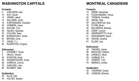 Caps/Habs lineups: https://pbs.twimg.com/media/CPre1ovWwAAvcR-.jpg:large