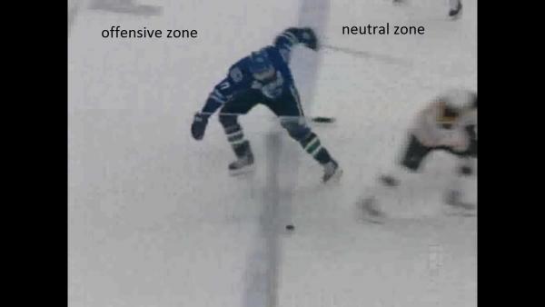 - Attacking players' skate position: One of a player's skates is not in contact with or behind the blue line of the attacking zone before the puck enters that zone.