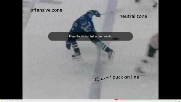 - Puck position: The puck must completely cross the edge of the blue line nearest the attacking zone to be considered inside the attacking zone for the purposes of offsides.