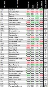 I like idea of seeing the results for each track broken down with what type of surface they run on along with what your top four horse do. Then the results can either be in a percentage or based off of a $2 bet.Comment -