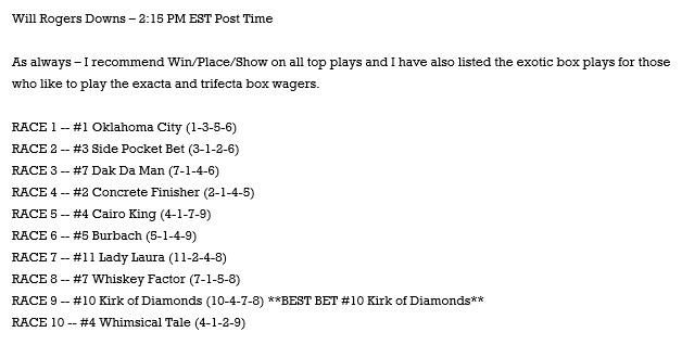 #128BlackJack’s Will Rogers Late Pick Four: