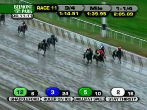 I remember you mentioned that no horse had come back to win from more than 2 or 3 lengths back all day on 2011 Belmont Stakes day. Race favorite Animal Kingdom had a poor start, then started his move, which looked powerful enough to win, but it stalled in the stretch. Ruler on Ice was second behind Shackleford (who we now know doesn't like mud) most of the way. I think the superfecta paid 78K, for a 12 horse race, so mud can turn to gold on certain days.