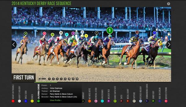 This clean right eye game starts being played as they go down the backside and continues around the far turn.