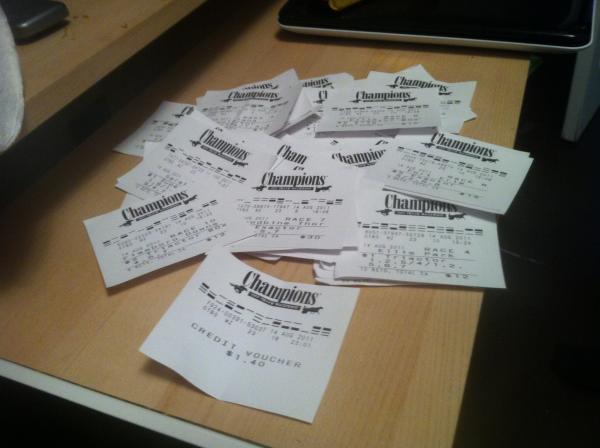 Hey those tickets look like mine somedays... its a grind. To make a profit in the ponies ... is by watching watchin watching races. Don't just follow your horse , look at what other horses are doing , getting brutal trip , got checked several times stopping his momentum etc then make a note of them and bet them down the road if they get a race that looks easier.