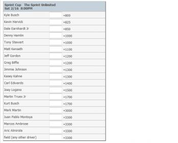 like i said in an earlier post i, didnt bet anything like normal on this race in my race handicapping and preperations nor is my wagering system and risk even half as much as usual...all my regular bets on openers and stuff during the week are still really a week away ater daytona but, then things will be back to normal for my style of betting ever week and so will the weekly race thread for all of us