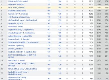 #380I'm going to guess that Captainkmc and msstbulldog aren't in the weekly pool unless they speak up. In that case: