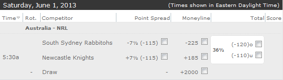 0.5* Rabittohs (to win by) 13+ ($2.45 Sportingbet)