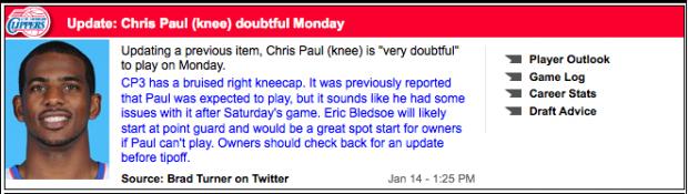 On the flipside, I'm hearing Paul is also out. I like the pick.