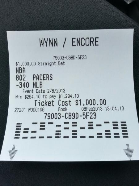 #3no he paid 1000...if pacers win he collects 1294....Originally posted by john91748SO you paid 1294.10 to win 294.10 ?..Comment -
