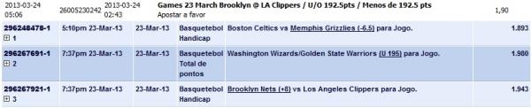 Boston Celtics/New Orleans Hornets (O 186) 1.877