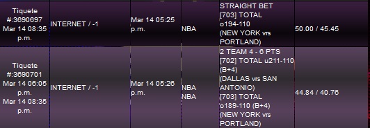 Dallas at SAntonio -9.5: Really hard to make a call here in one hand we have Dallas rolling and playing excellent ATS at this spot, on the other hand Spurs want to prove Minnesota´s and Portland´s games were accidents, they showed already what they can do, I prefer to walk away from this one.