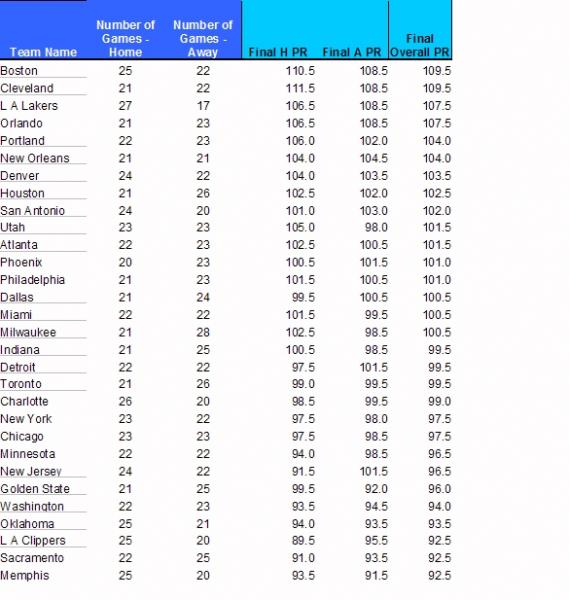 Ill try to think of other things as we go along. I am sure I am missing something. Attached is the NBA Power Rating Chart for today.