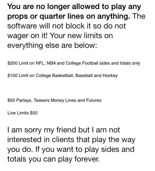 #87No, I had two locals but one already shut me down. The other one has very little props. And no, I have looked at their lines but I don't find value there that much, I played with Bovada for 2 years and their lines are soft, but they limited me too so I'm down to the one local guy.Comment -