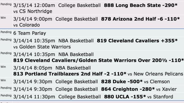 | Mar 14 | NBA [819] CLEVELAND +9½-110 |