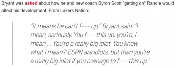 This was the text from Kobe to LeBron: “Go ahead and get another MVP, if you want. And find the city you want to live in. But we’re going to win the championship. Don’t worry about it.”