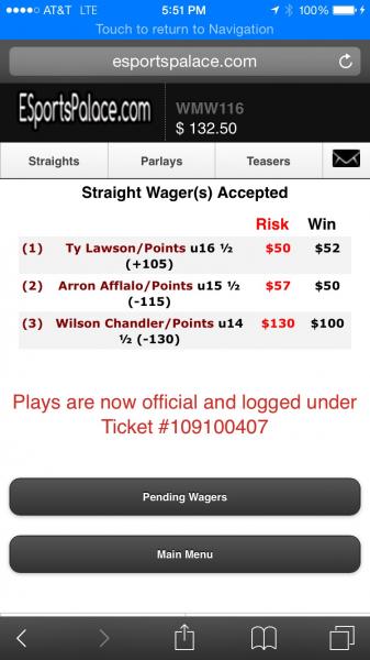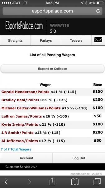 | (2) | Wesley Matthews/Points u16 ½ (-110) | $165 | $150 |