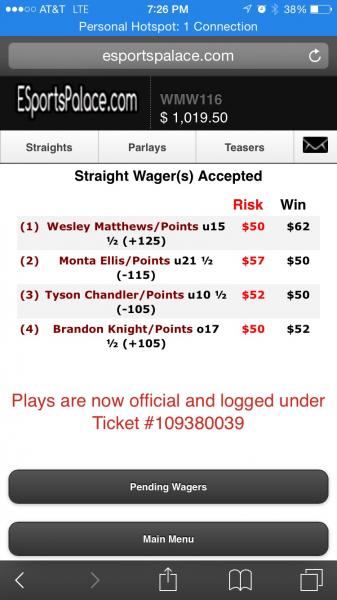 | Wesley Matthews/Points o17 (-115) | $57.50 | $50.00 |