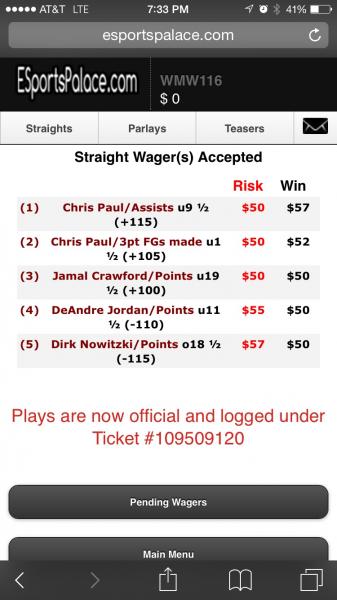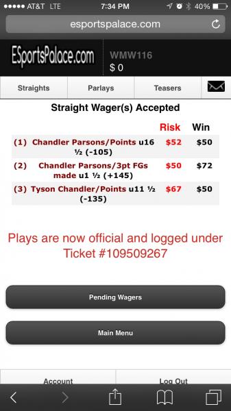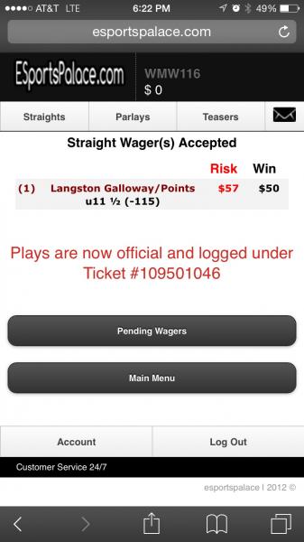 | (1) | Eric Bledsoe/Points u17 (+100) | $100 | $100 |