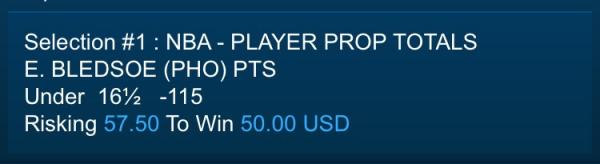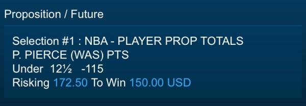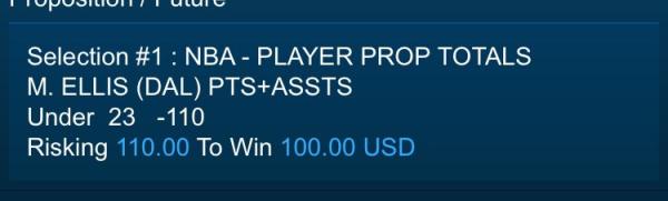 M. ELLIS (DAL) PTSUnder 19½ -115 Risking 115 To Win 100 USD Comment -