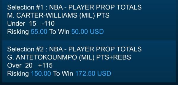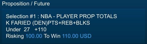 B. LOPEZ (BRK) PTS+REBSUnder 25½ -120 Risking 240 To Win 200 USD Comment -