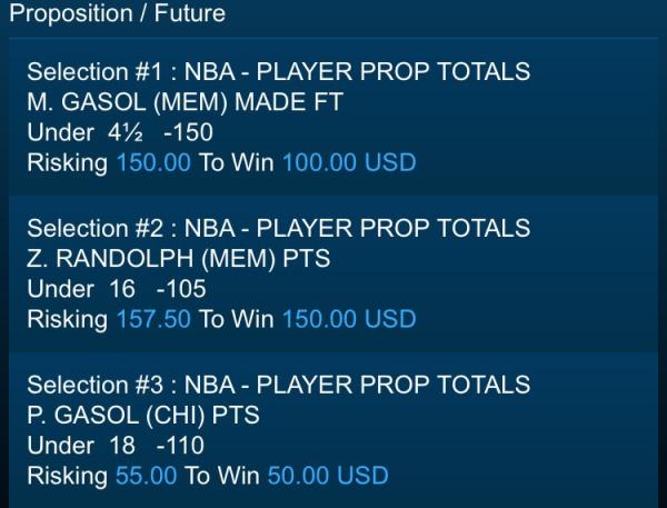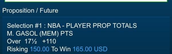 P. GASOL (CHI) MADE FTUnder 3½ +100 Risking 50 To Win 50 USD Comment -
