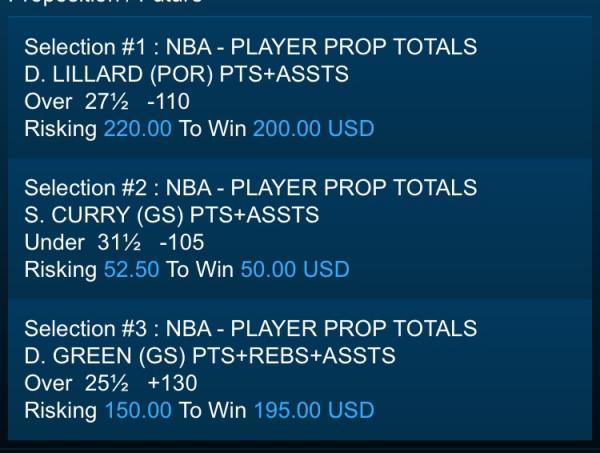 K. THOMPSON (GS) 3 POINTERSUnder 2½ +155 Risking 200 To Win 310 USD Comment -