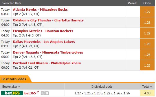 New York Knicks @ Portland Trail Blazers. To Win Match With Handicap: New York Knicks (+19.5) @1.88 *1UComment -