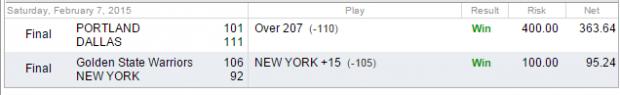 | 2/7/2015 | 2-0-0 | 100.00% | 458.87 |