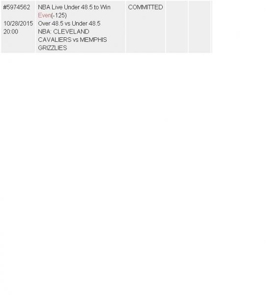 | 11/03/2015 @ 10:05 PM | NBA | [711] TOTAL o196.5-120 (MEMPHIS vrs SACRAMENTO) |