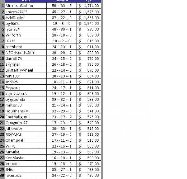 If you are new to this thread you must pay 15 points to join and have your bets tracked. I have had far too many users post a bet or two and leave after losing two in a row. I don't mind taking my time to do this, but don't waste my time just trying to get lucky. A 15-point investment will prove you are serious about joining this thread. I'm sorry that it has had to come to this.