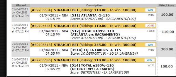 (1-4) night.-$167.50. Luckily all were .5 unit wagers. (28-21) Total!!!
