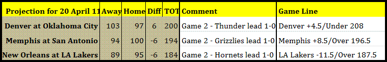 score: Denver 89 Oklahoma City 106 - NBA off to a good start .........