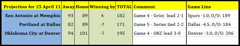 The Spurs/mem could go either way, but will be a physical game where each shot is difficult to make by either sides, like a full court press style flatout 48 mins, therefore can expect a low scoring here.
