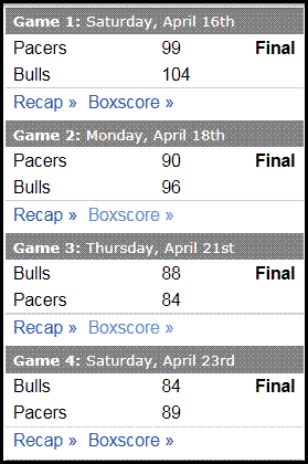 This is it for Indiana's basketball, it will be a respectable effort by them to keep the game close to the end, but thank you for coming and goodbye. See you next year. Bulls will wrap it up 4-1.