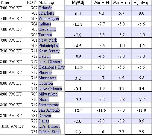 Not adjusted for rest/injuries. 1st 2 columns adjusted for home court, last 2 are not.