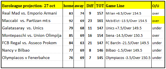 A meaningless game for two rock bottom teams, each with poor offensive outputs against most quality teams; Olimpija had just released 3 key players. We should see decent high scoring affair, leading by Asseco Prokom with their new shooters in the line up.