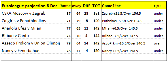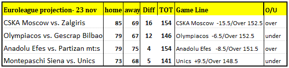 It's out of the question for Zagreb to win this game despite a must win, it's more of CSKA Moscow win by how much ? thing can get nasty for Zagreb in this game as Mario Kasun, Dario Saric and Damir Mulaomerovic will not be playing while point guard T.J. Ford reached an agreement to leave the club that's a 17 points & 10 assists hole to fill, TJ was just feeling it, Zagreb was a team found its groove with a rare 2 back to back win; in their last game at Panathinaikos, they were closed it in at first half and was enough to cover +20.5 despite poor 2nd half.