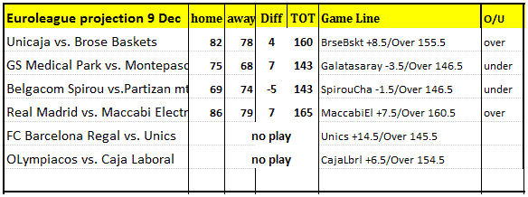Olympiakos really needs a win against Cantu which is already through. Macabbi has not been the same lately. Also the line of 141.5 seems kind of low for Unics. But then again I didn't have time to look into them better.