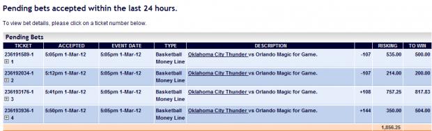 Mar 01 08:05 PMINTERNET / -1 Mar 01 05:31 PM NBA STRAIGHT BET
