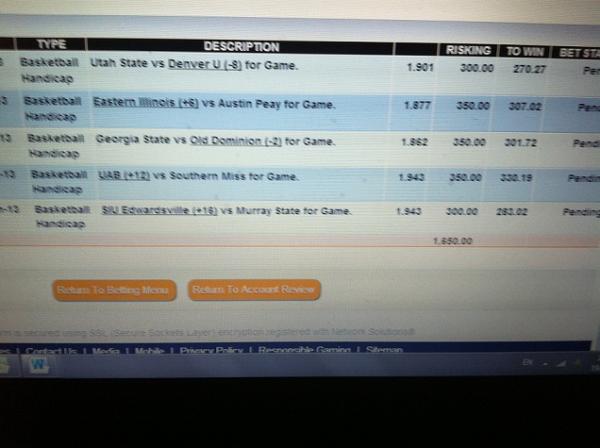 Miami O shot terrible the whole game and still was only down 2 with a couple mins to go. I am never thrilled about going 4-3 even though it's a winning day. To me its not good enough. Like I said in the past I am my worst enemy. I beat myself most of the time. But it keeps me motivated to better myself each and everyday at this game.Comment -