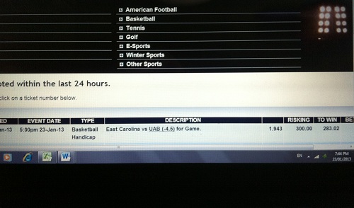 #30Jan 23 11:39pm Basketball - Pending 250.00 to win 227.27 1. Basketball - Arkansas Little Rock - spread -5 (1.91)
